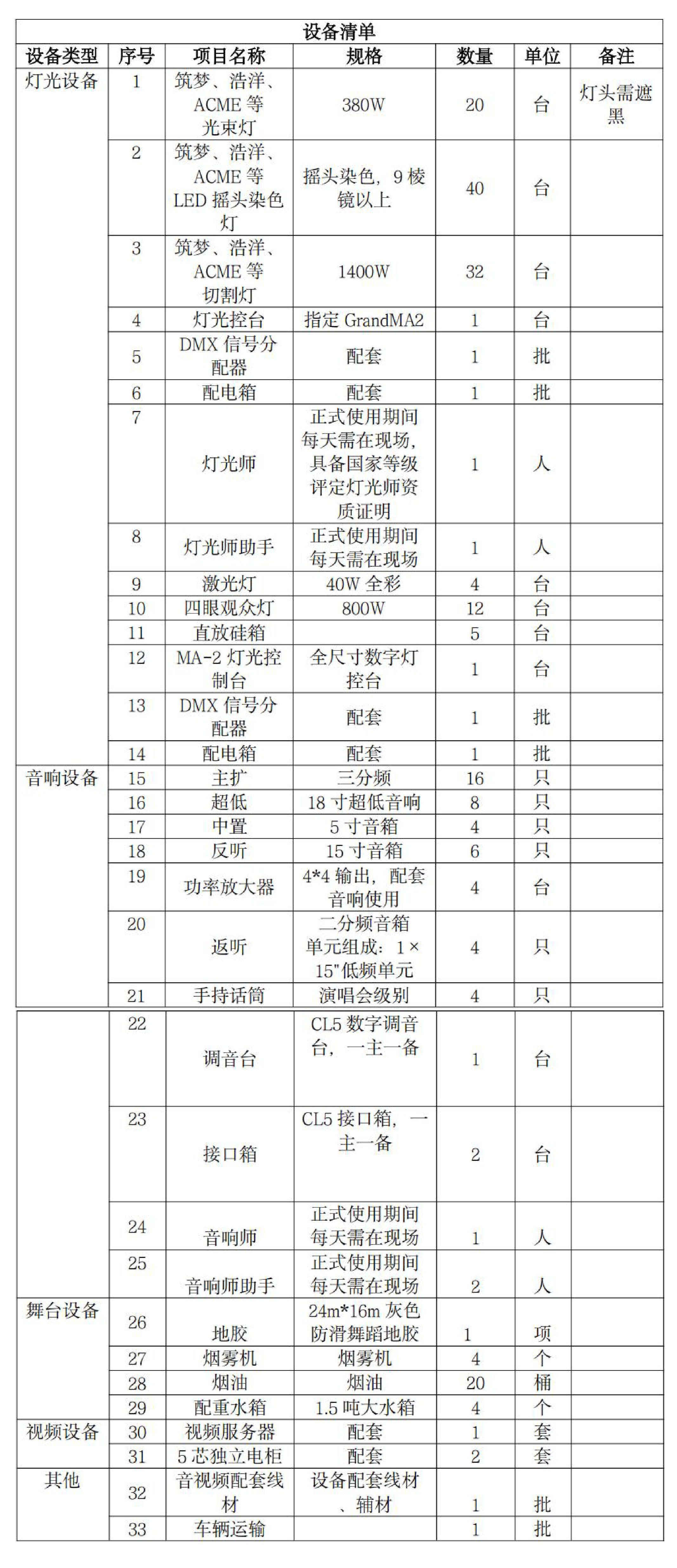 采购需求:暂定11月25-11月30日需要使用以下舞美设备