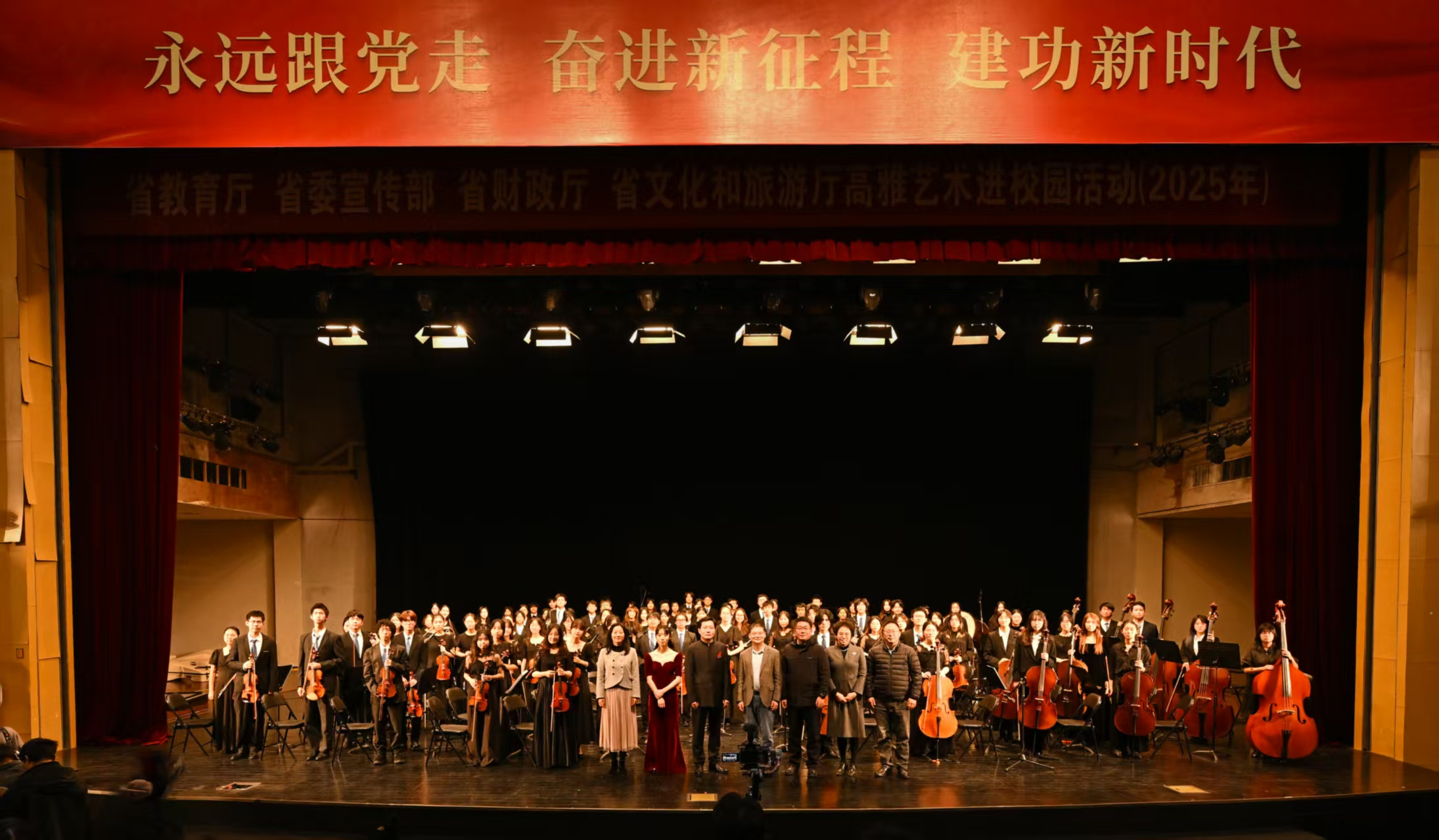 本次江苏省高雅艺术进校园活动,以四部门联合之力搭建美育桥梁,既让高雅艺术浸润青年心灵、传承地域文化,更助力 “五育并举” 的育人实践。我校交响乐团的积极参与,既是我校践行美育使命、传播艺术魅力的责任担当,也通过校际演出锤炼了乐团专业实力、搭建了文化交流纽带,更以高质量艺术传播提升了学校的文化美誉度与社会影响力,为我校园文化建设与社会美育发展注入持久动力。
