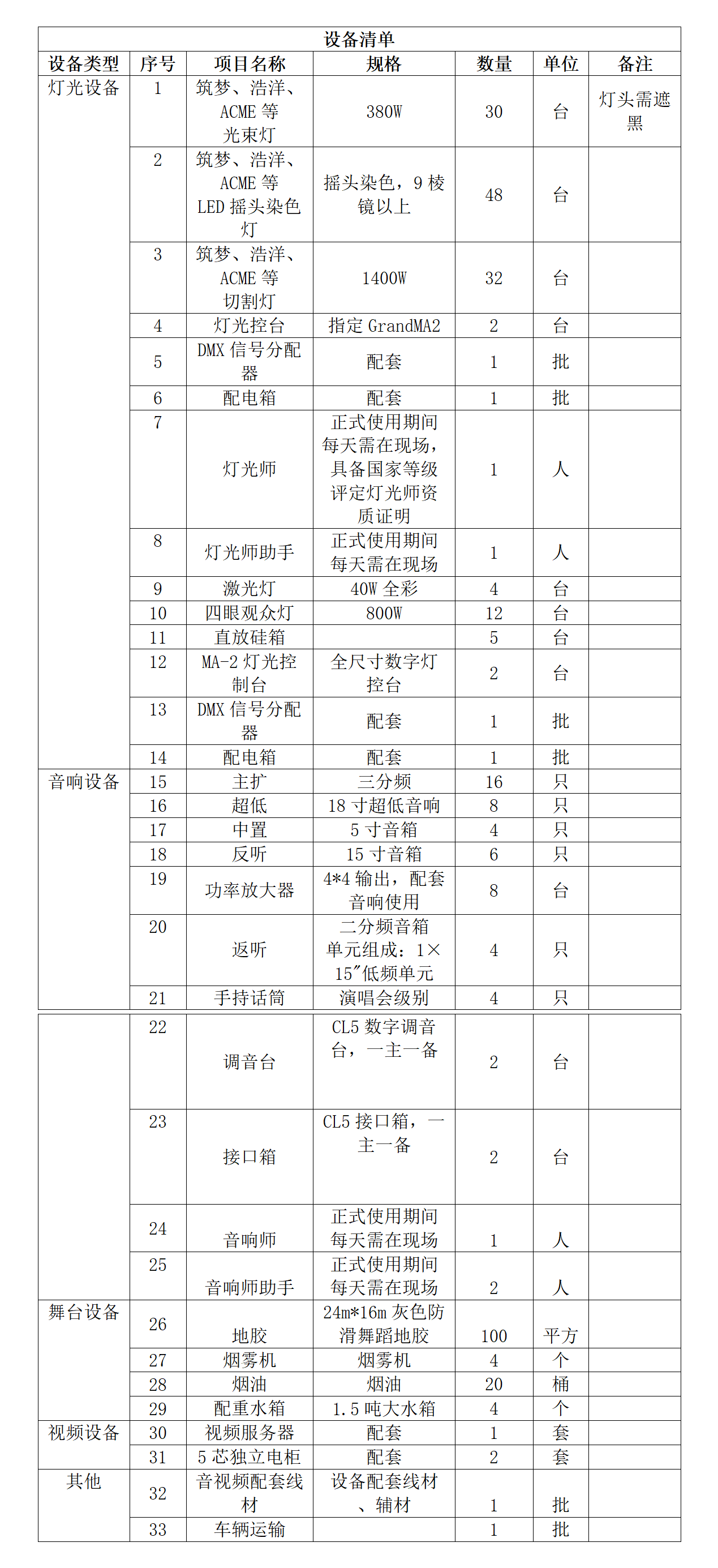采购需求:暂定11月11-11月16日需要使用以下舞美设备